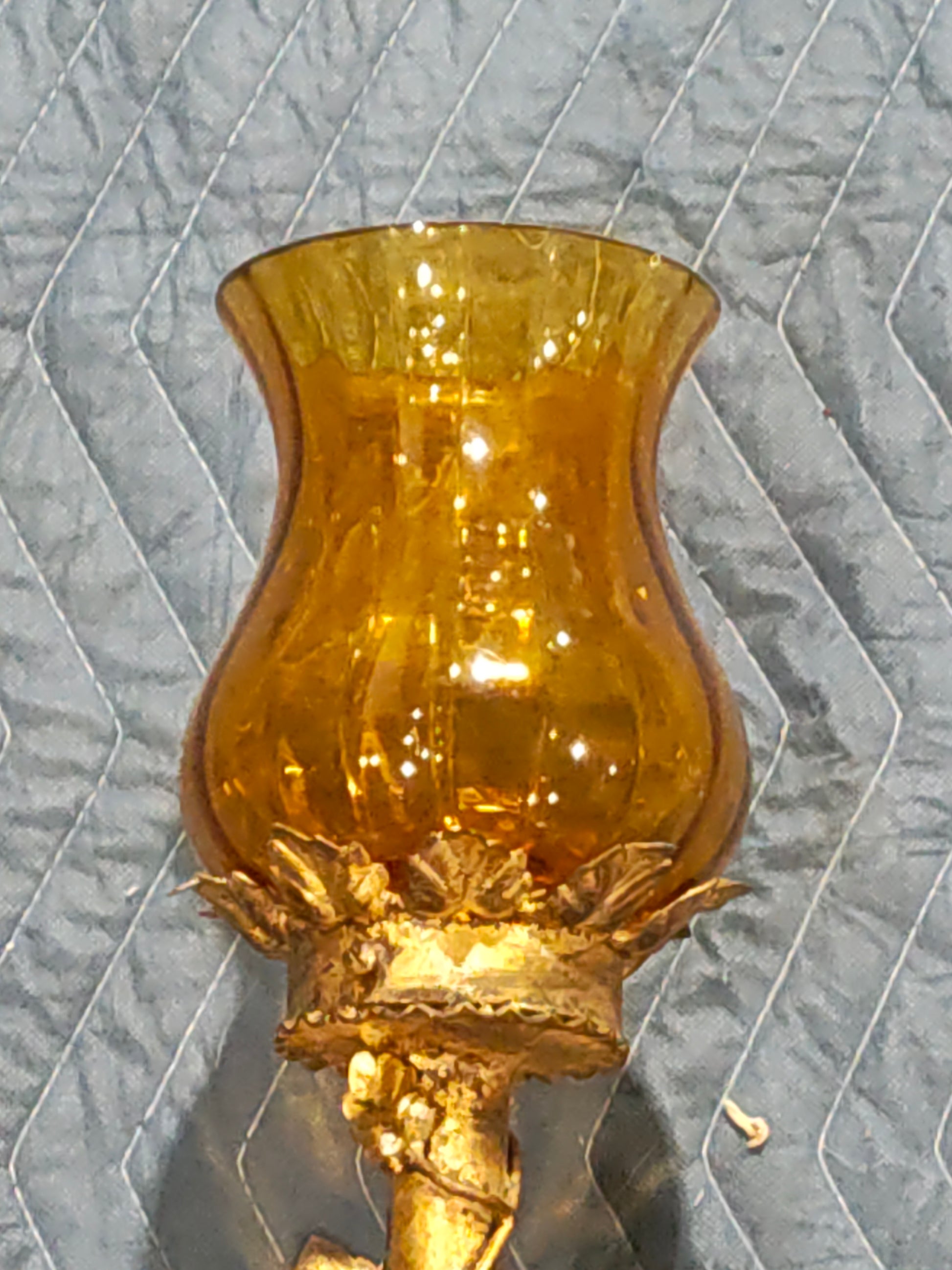 French Gilt Metal Wall Sconce with Amber Glass Hurricane, c. 1890