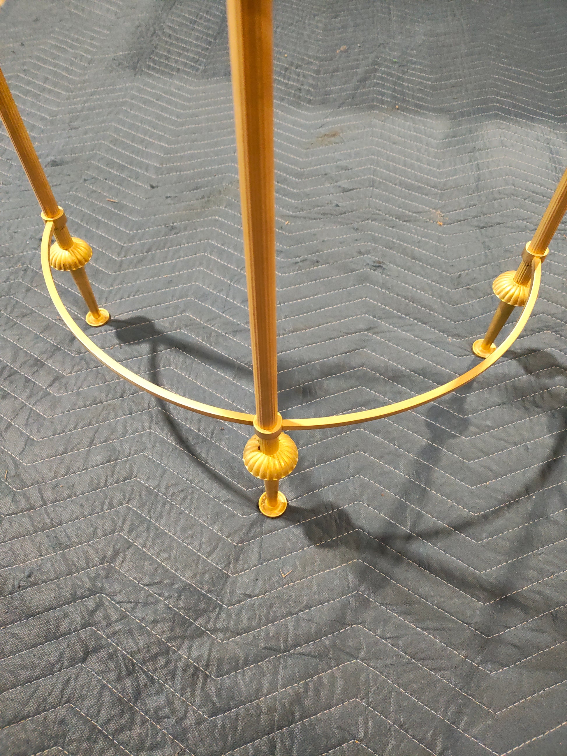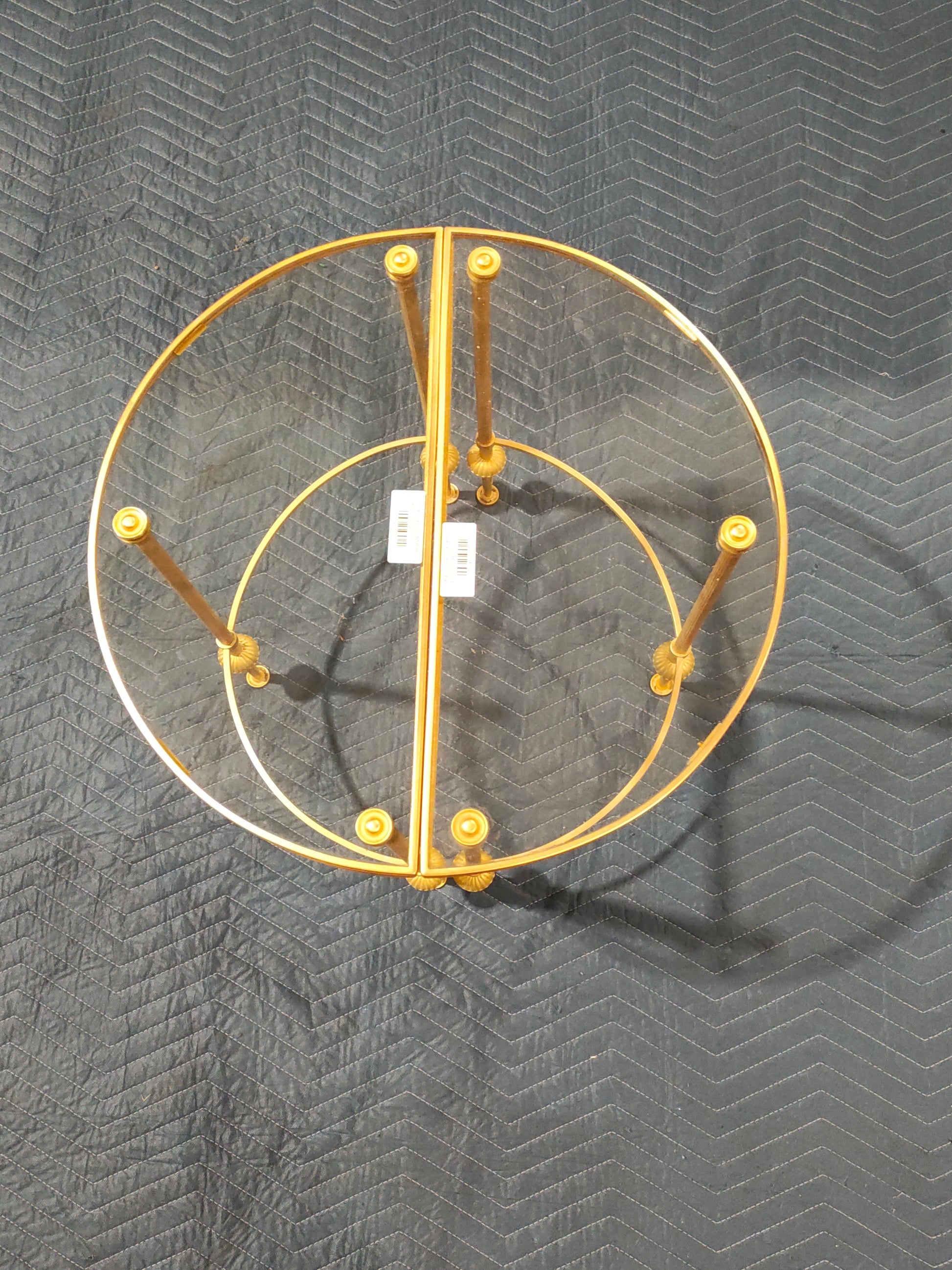 Good vintage condition with light wear consistent with age and use. Gilt brass finish presents well; glass tops are intact.
