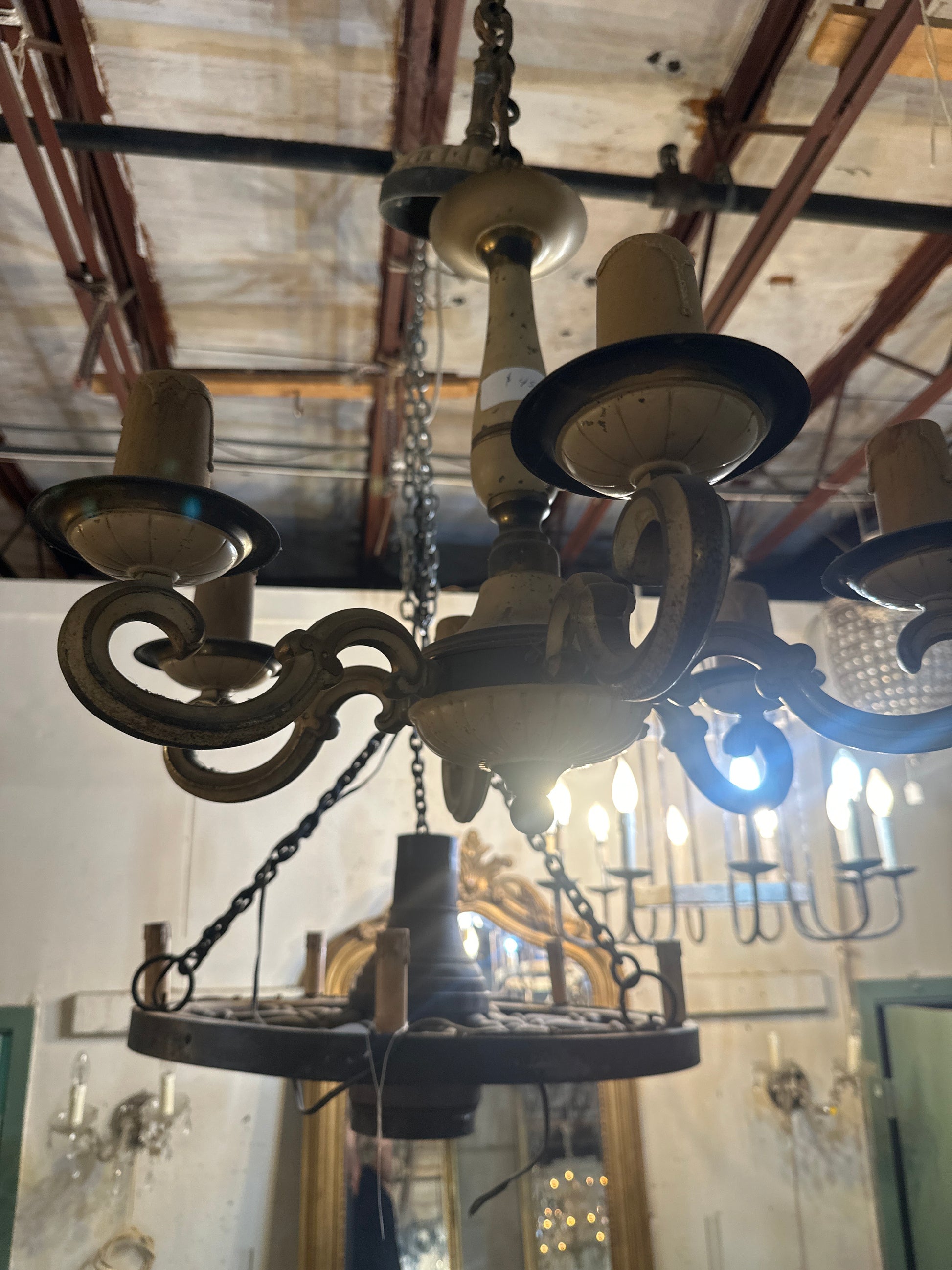 Vintage wrought iron and tole chandelier